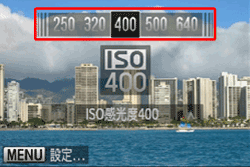 )。 左右按 <方向按鈕> 設定 [ISO 感光度]。作出選擇後,按左 <FUNC./SET> (