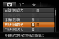 ),然後將 [自動對焦輔助光] 設定為 [開]。
