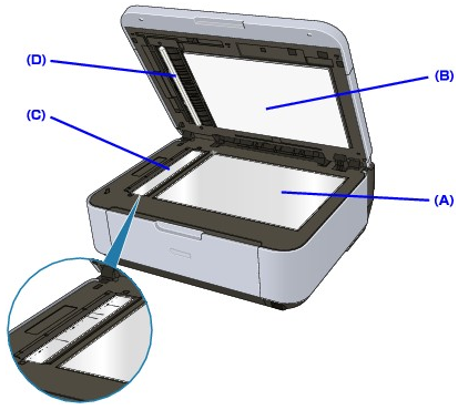 - 文件蓋內部(白色頁面) (B)較易受損,請輕輕擦拭。
