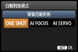 - ONE SHOT:單張自動對焦