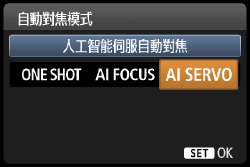 - AI SERVO:人工智能伺服自動對焦