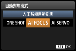 3. 將出現[自動對焦模式]。按<十字鍵>選擇自動對焦模式,然後按<SET>。