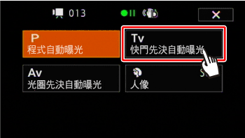 4. 點選 [Tv 快門先決自動曝光],然後設定所需的快門速度。
