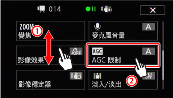 ],或者用手指在轉盤上拖曳以設定 AGC 限制。值越小,增益限制越小。(可以如常記錄黑暗場景。)