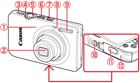 ![]() | 快門按鈕 | ![]() | 直流電連接器端子蓋 |