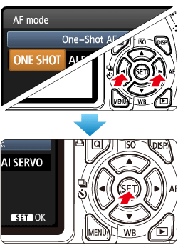 3. 將出現[自動對焦模式]。按 <十字鍵> 選擇自動對焦模式,然後按 <SET> 按鈕。