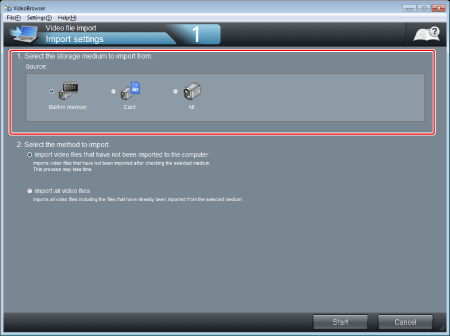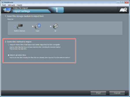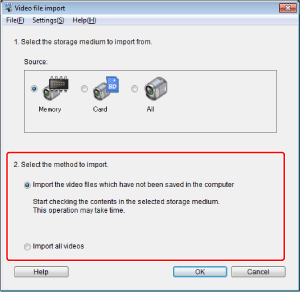 - 匯入尚未儲存於電腦的視頻檔案:匯入尚未匯入電腦的檔案。