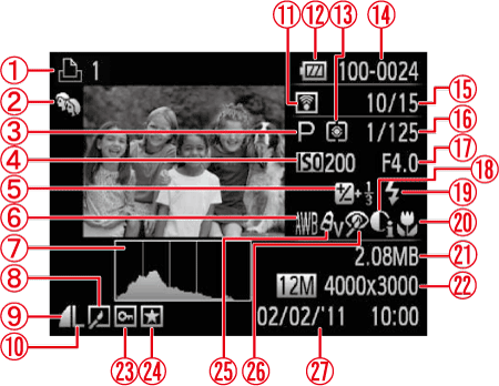 ![]() | Eye-Fi 傳輸 完成 | ![]() | 我的顏色 |