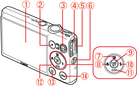 ![]() | 螢幕 (液晶螢幕) | ![]() | (微距)/ 按鈕 |