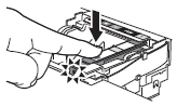 直到其「喀嚓」一聲到位。當正確安裝完畢後,墨水指示燈亮起紅色。