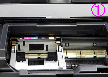 - 如果列印頭固定座移至右側,請關閉並出現開啟機蓋。