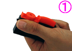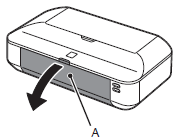 (1) 握住墨水盒,使橙色保護蓋 (A) 向上。