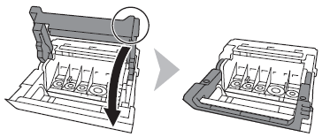 穩固捏住列印頭鎖定桿並將其完全放下。