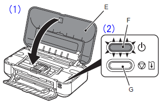 如果警告指示燈 (G) 閃爍橙色,請確保列印頭及墨水盒已正確安裝。
