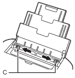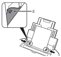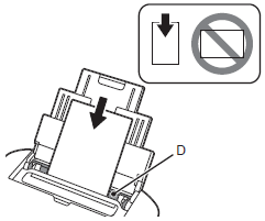 在後端托盤 (D) 中央裝入 A4 或 Letter 大小的一般紙張。