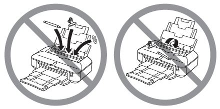 請勿將印表機置於可能有物體落下的地方。此外,請勿在印表機上放置任何物體。當開啟機蓋時物體可能落入印表機中,導致故障。