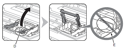 請勿觸摸列印頭固定座 (E)內部。如果觸摸,印表機可能無法正常列印。