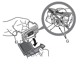 - 請勿觸摸列印頭金屬部份(G)的內側 (F)。如果觸摸,印表機可能無法正常列印。
