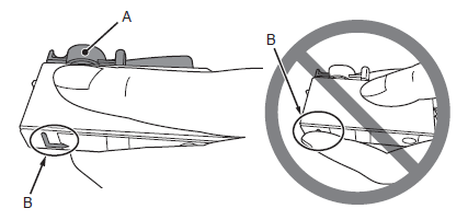(2) 握住墨水盒,並注意不要覆蓋 L 形氣孔所在的區域 (B)。