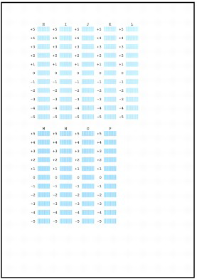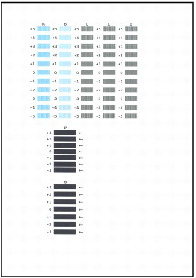 (1) 查看列印的圖案並在 A 欄區域內選擇水平條紋最不明顯的圖案數值。