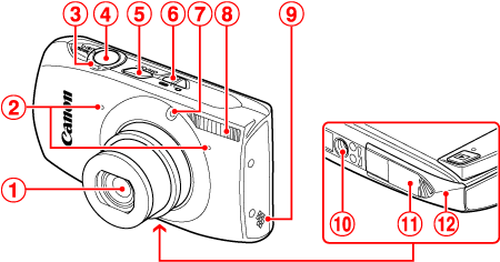 ![]() | 快門按鈕 | ![]() | 三腳架插孔 |