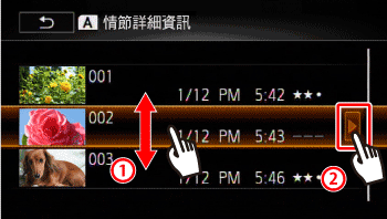 > 開啟播放模式。1. 開啟日期索引螢幕。
