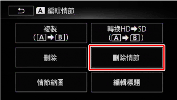 ]。刪除情節會永久刪除其中包含的所有場景。[未分類] 及 [視頻快拍] 這兩個預設情節無法刪除。
