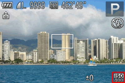 4. 如果顯示以下圖示,則表示設定完成 (如果 [ISO 感光度] 設定為 400)。