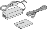 | 此套裝允許您使用家用電源 為相機供電。長時間 使用相機 或連接至 電腦或打印機時,建議使用此套裝為相機供電。但不能用於 為相機電池充電。 |