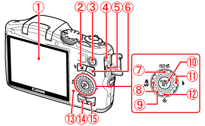 ![]() | 螢幕 (液晶螢幕) | ![]() | 控制轉盤 |