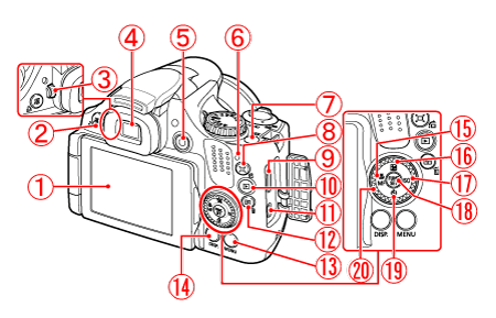 ![]() | 觀景器 | ![]() | (顯示) 按鈕 |
