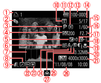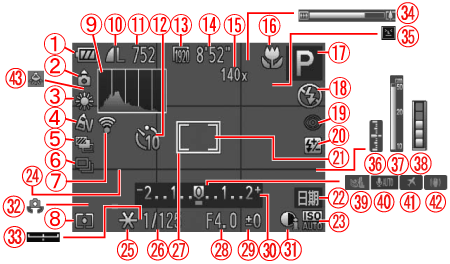 ![]() | Eye-Fi 連接狀態 | ![]() | 曝光補償量 |