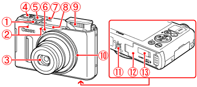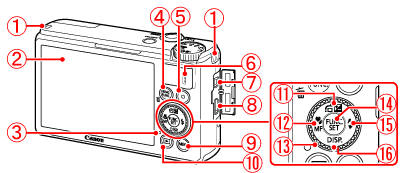 部件名稱及螢幕上顯示的資訊 (PowerShot S100)