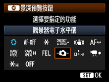 ] (觀景器電子水平儀),然後按 <SET> 按鈕。