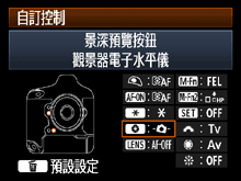 ] (多功能按鈕),然後按 <SET> 按鈕 (此處以選擇 [景深預覽按鈕] 為例)。