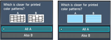 2. 在確認螢幕上選擇最接近於列印出的噴嘴檢查圖案的圖案。