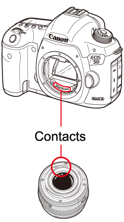 如有一方的接點髒污,則無法正常通訊,並且有些情況下自動對焦可能無法正常操作。如果鏡頭或相機接點髒污,請使用清潔的乾布輕輕擦拭。