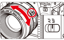 - 將鏡頭對焦模式開關設定為 <MF> 並手動對焦。