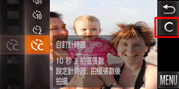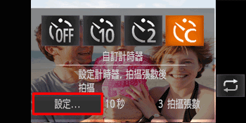 ),觸控左下方的 [設定...],然後設定 [啟動延遲] 和 [拍攝張數]。