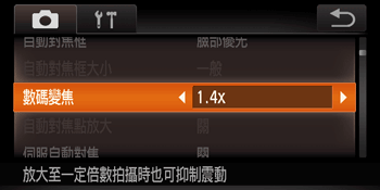 - 設定 [數碼變焦] 為 [1.4x] 或 [2.3x]