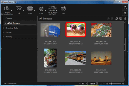 - 要選擇多個影像,按住鍵盤的 <Ctrl>* 鍵點選多個影像。