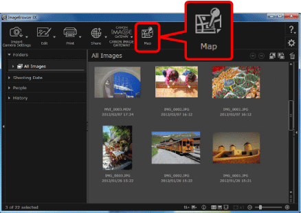 如果電腦上安裝了 [ImageBrowser EX],可以同時選擇要在地圖上顯示的多張影像。
