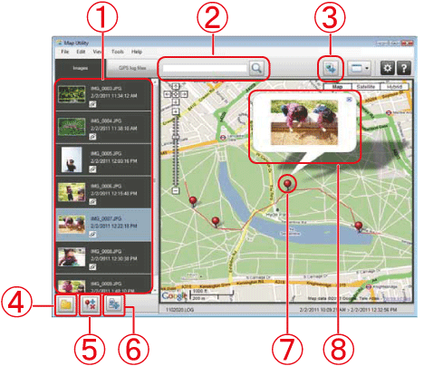 - 此程式使用 Google Maps 在地圖上顯示影像位置和旅行路線。 影像中的位置資訊和 GPS 記錄會發送至服務提供商。
