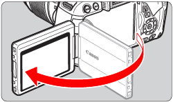 - 即時顯示拍攝或拍攝短片時,將液晶螢幕正對主體會在螢幕上顯示鏡面影像。