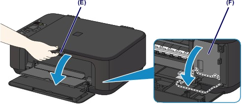 FINE 墨盒固定座移至更換位置時,列印頭蓋 (F) 將自動開啟。