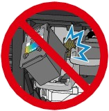 請勿阻擋 FINE 墨盒固定座或用力推動它。請勿在 FINE 墨盒固定座完全停止前觸摸它。