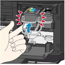 (2) 向上推墨盒鎖定桿以將 FINE 墨盒鎖定到位。