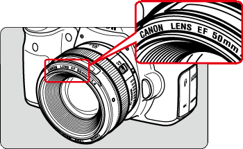 - 「EF」顯示在焦距前的 EF 鏡頭前端。