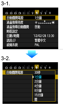 有關「自動關閉電源」設定的更多資訊,請參閱相機隨附的使用說明書。