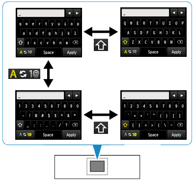 :出現字母時,點選以在大寫字母和小寫字母之間切換。出現數字和符號時,點選以切換符號類型。
